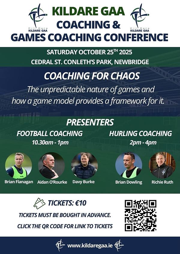 KGAA are delighted to announce that Kildare GAA Coaching & Games will be hosting a Coaching Conference on Saturday, October 25th at Cedral St. Conleth's