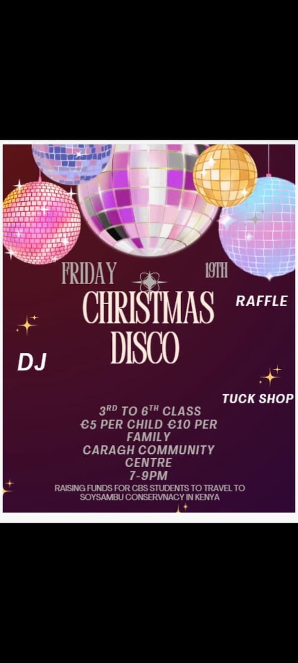 A fundraiser for the 7 boys from Caragh to go to Kenya Conservancy in March with Naas CBS is on this Friday for 3rd to 6th Class🪩🕺💃