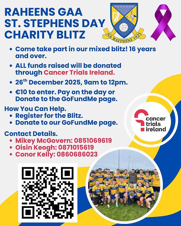 A reminder that the blitz is in aid of Cancer Trials Ireland. The link to donate is attached below. All donations greatly appreciated!!