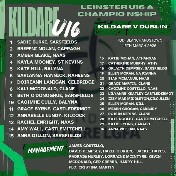 Best of luck to Sarianna Hannick and the Kildare LGFA u16 girls team and management in the first round of their championship VS Dublin 🟡🔵🟡🔵⚪️⚪️