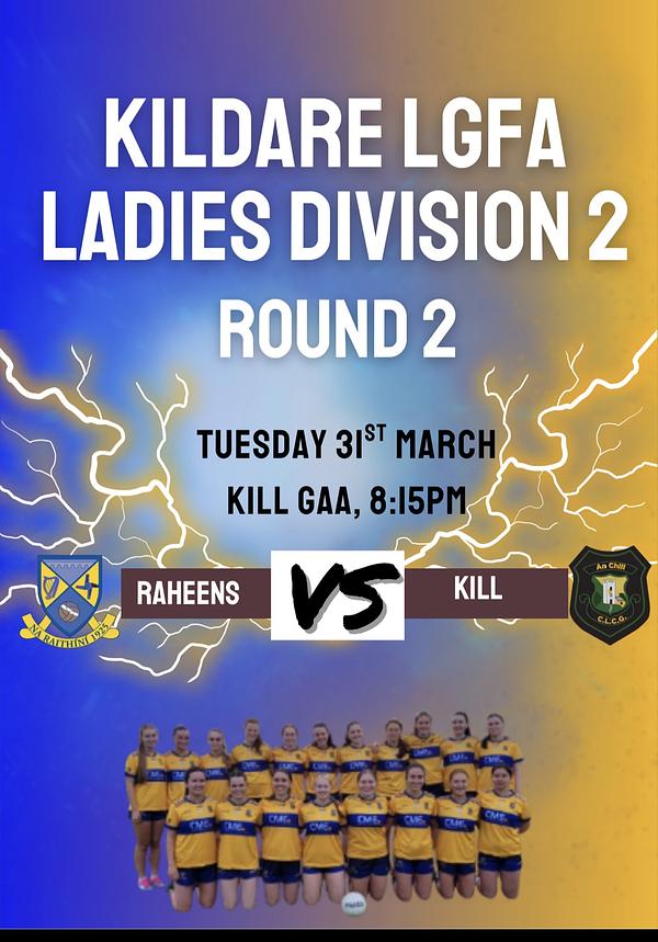 Our Division 2 team play away to Kill in Kill GAA at 8:15pm