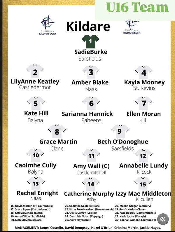 Best of luck to Sarianna Hannick and the Kildare LGFA u16s team and management today in their clash against Meath ⚪️⚪️