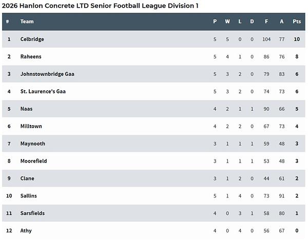 A great result today for our Senior Men’s team against Johnstownbridge in Division 1 Round 5, a win that moves Raheens up into 2nd place in the league table after five rounds.