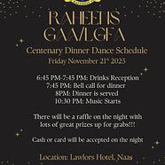 The schedule of events for tomorrow nights Centenary Dinner Dance at Lawlors Hotel🎭✨💃6:45-7:45...